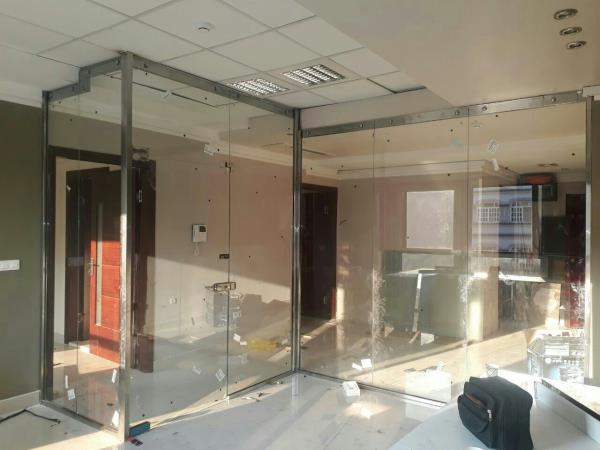 پارتیشن اداری تک جداره تمام شیشه سکوریت 10میل و پروفیل آلومینیوم اختصاصی فریم لس