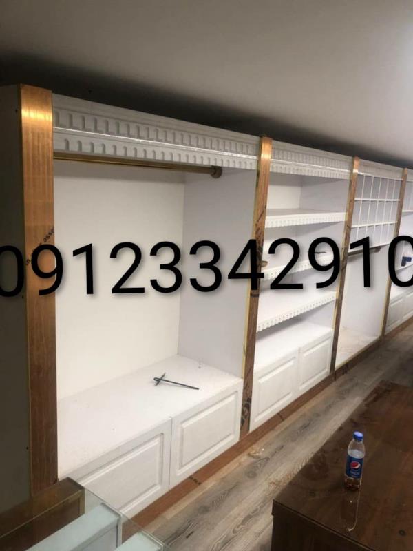 طراحی ۳بعدی واجرای انواع قفسه پیش ساخته قفسه فلزی قفسه الومینیوم قفسه شیشه ایی قفسه چوبی قفسه ام دی اف قفسه نئوپان برای فروشگاه ومغازه